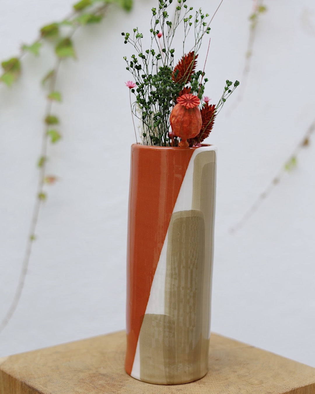 Esta jarra tem um furo atrás para colocar na parede mas pode também ser pousada.