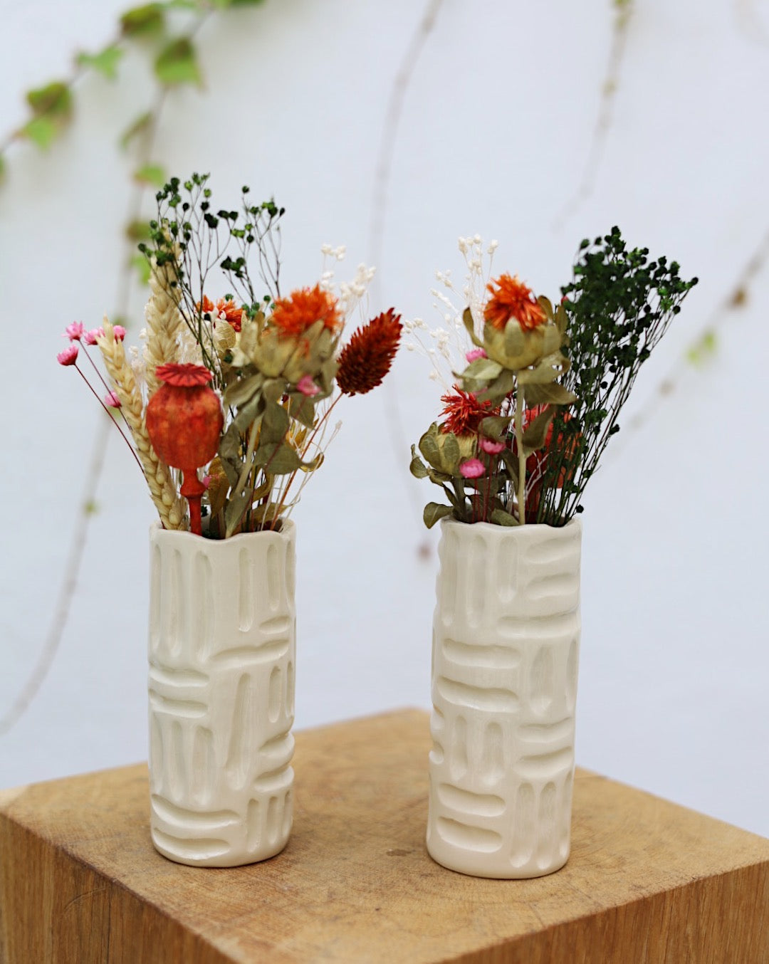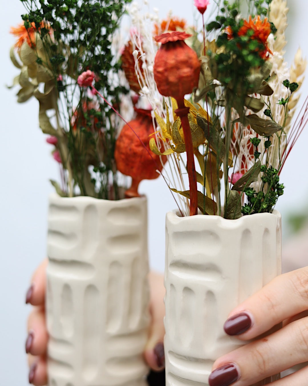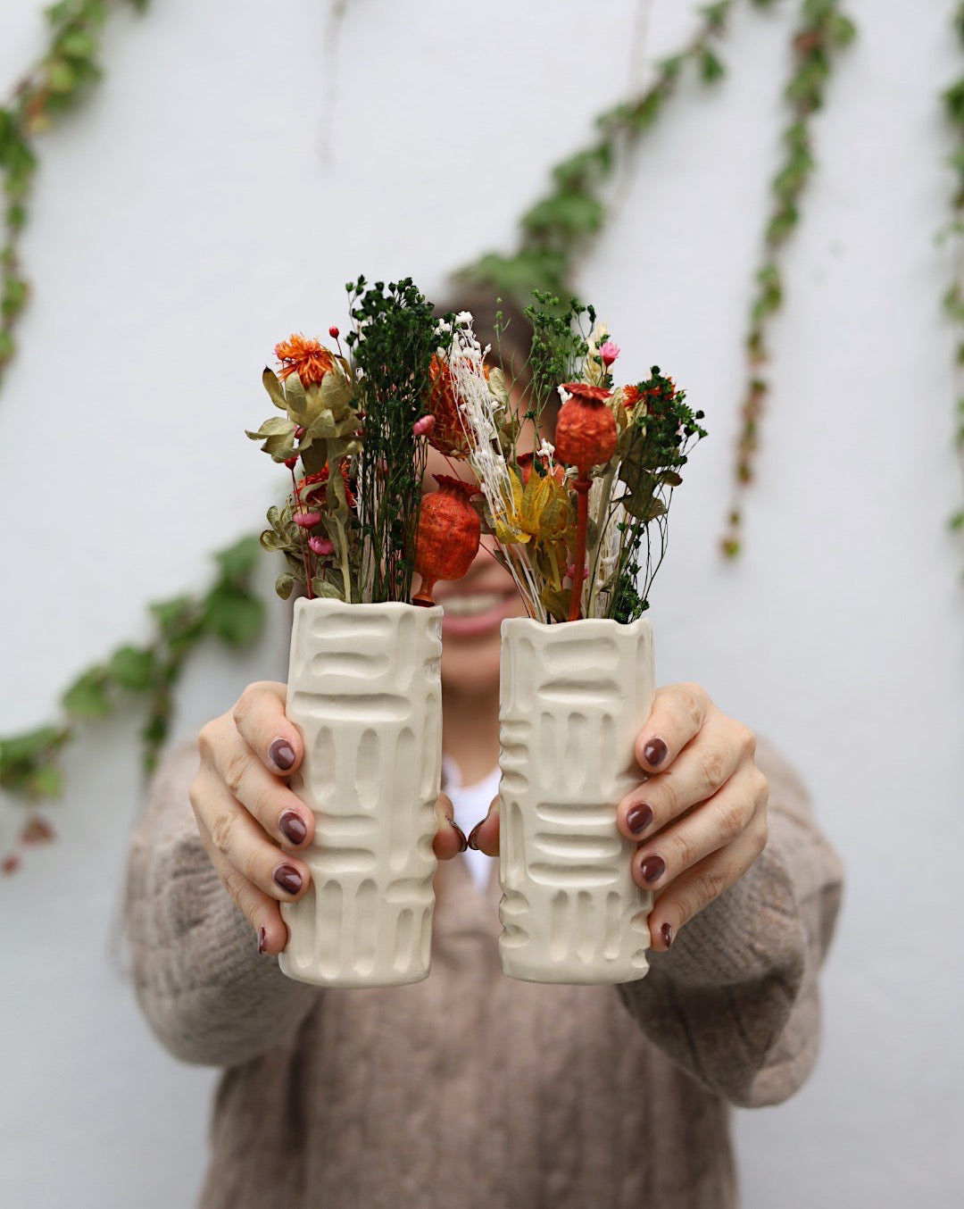 Todas as riscas são feitas uma a uma, sem moldes e por isso todas as jarras são únicas.
