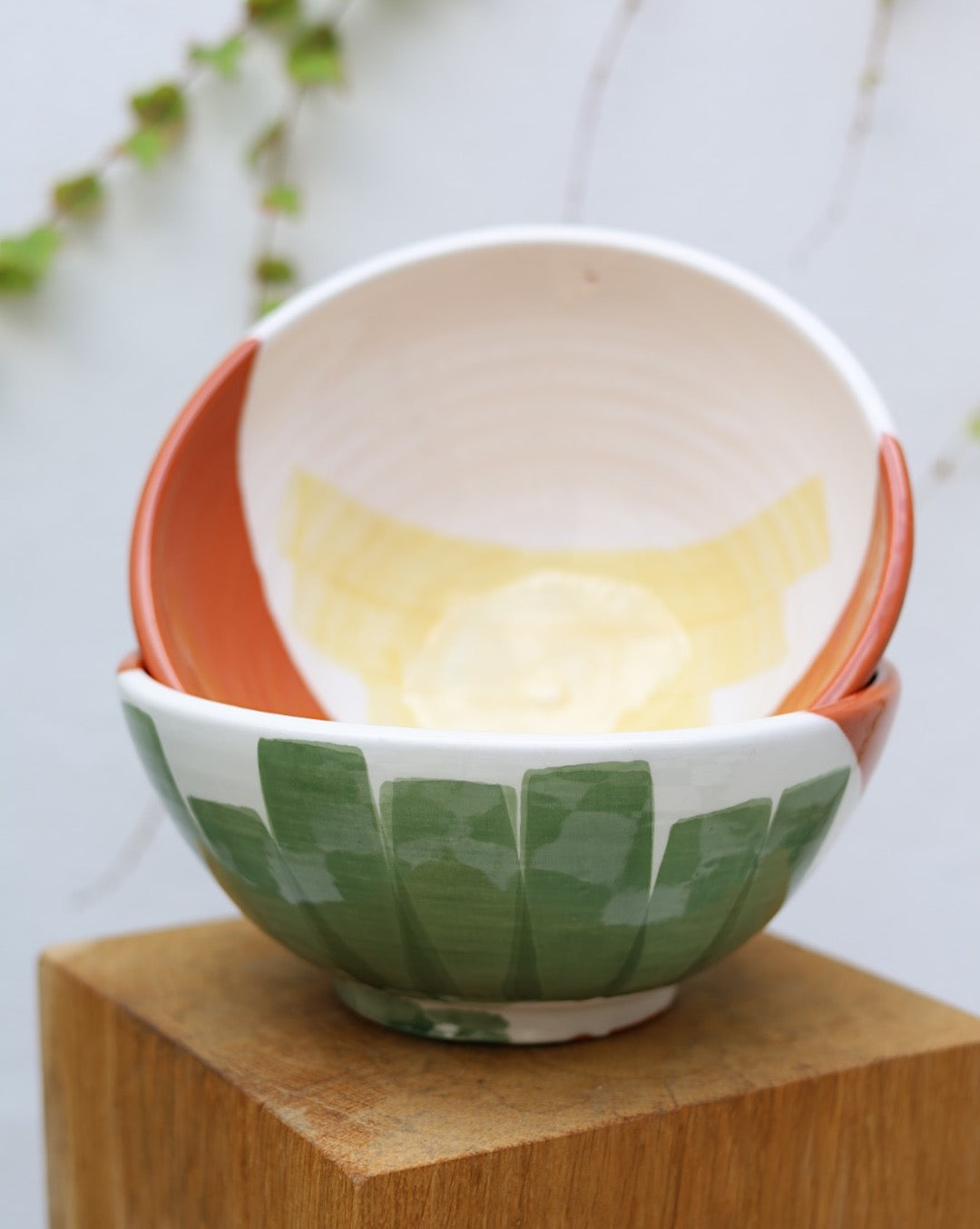 Este artigo é feito na roda de oleiro e pintado à mão. Por este motivo podem existir ligeiras diferenças no tamanho e pintura.